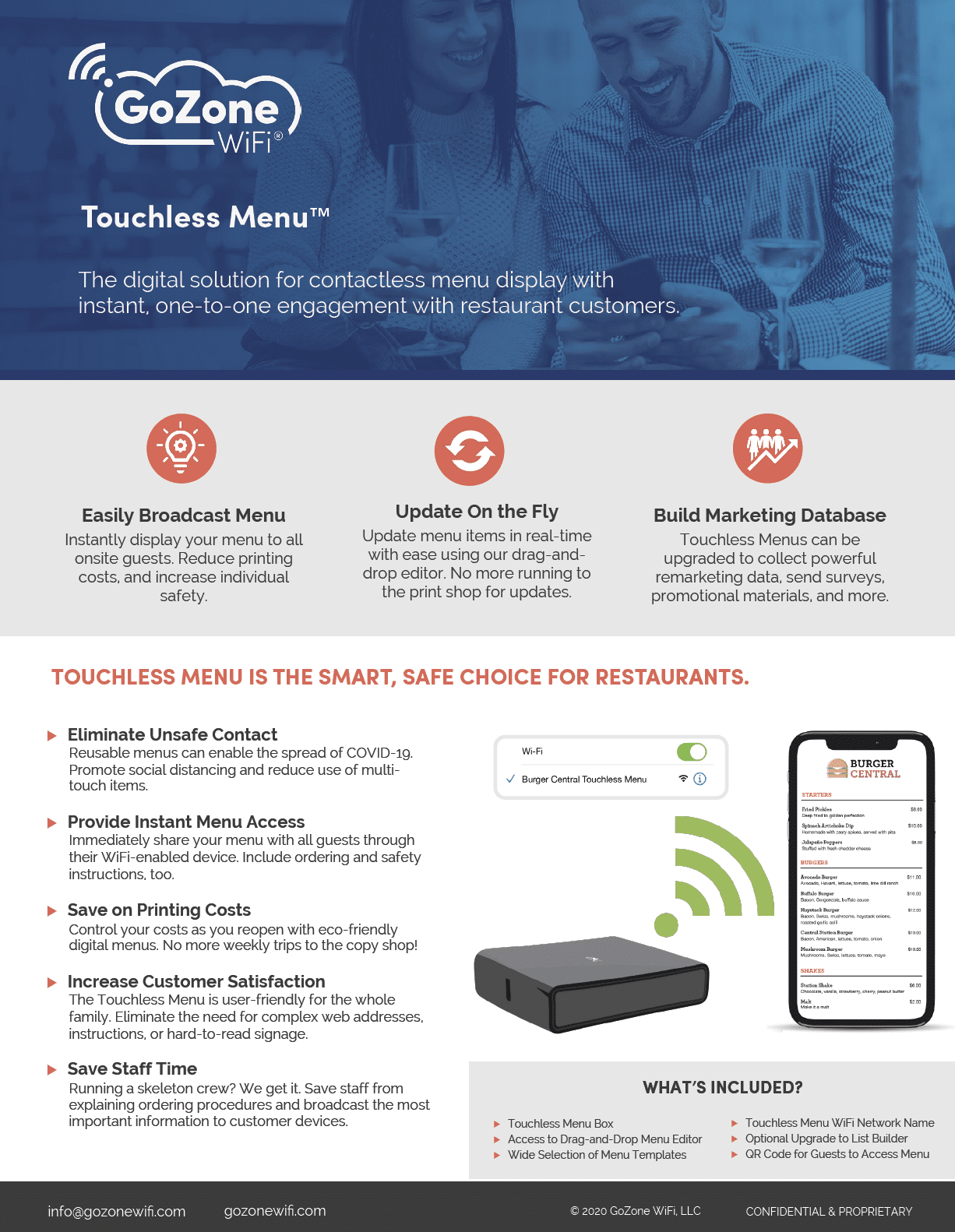 With Touchless Menu, your current menu is immediately shared with all on-site guests, eliminating frustrating web searches. Customers will be delighted to easily access your menu – no squinting or printing required!