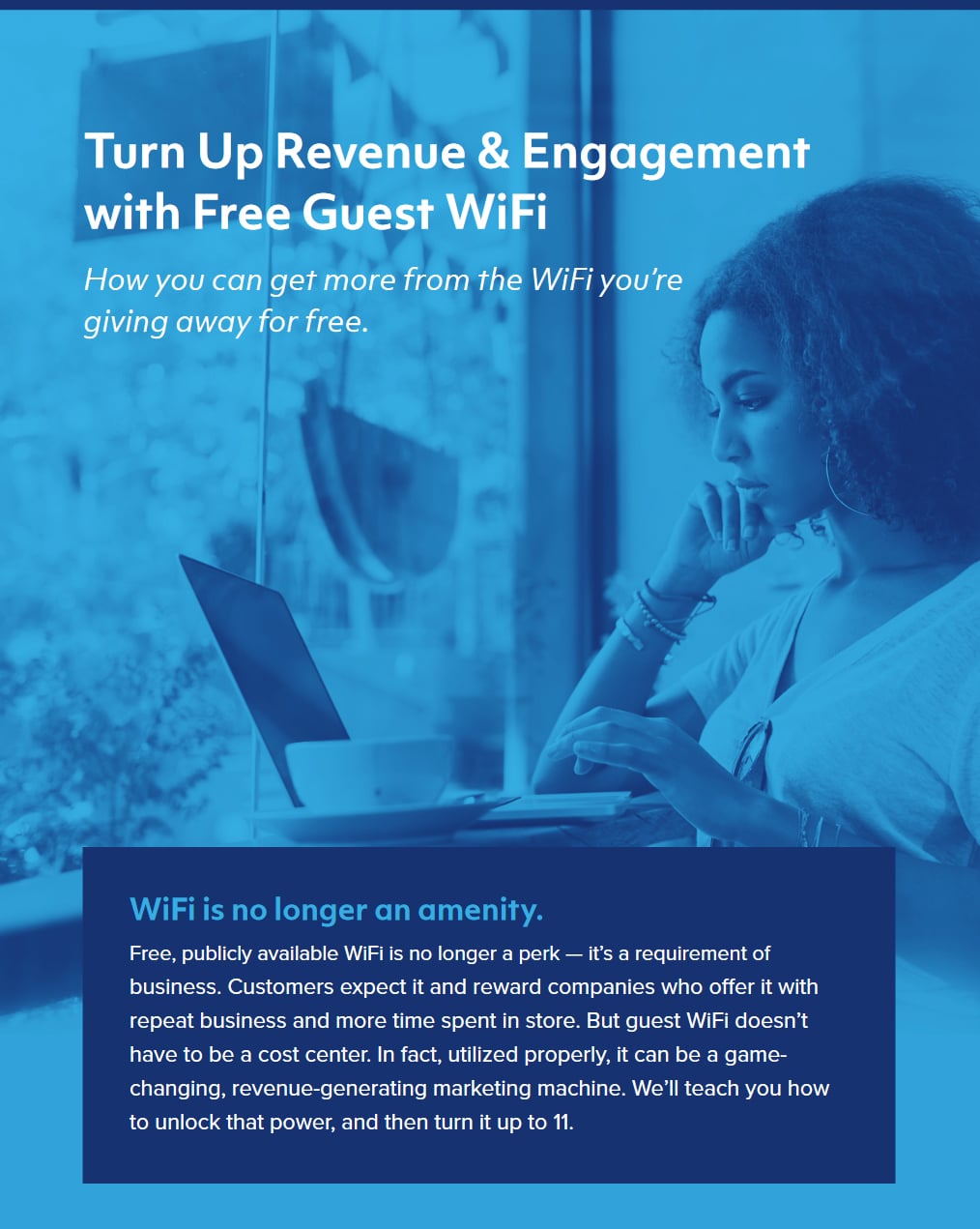 Guest WiFi doesn’t have to be a business cost. In fact, it can drive revenue, customer loyalty, and connect your digital marketing efforts to your brick-and-mortar location. In our new ebook, you’ll discover: