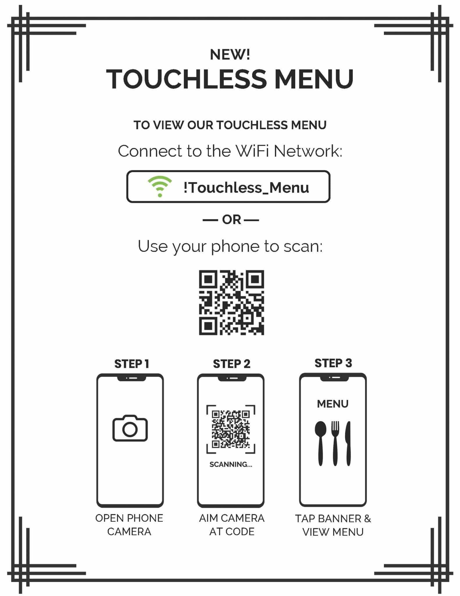 With Touchless Menu, your current menu is immediately shared with all on-site guests, eliminating frustrating web searches. Customers will be delighted to easily access your menu – no squinting or printing required!