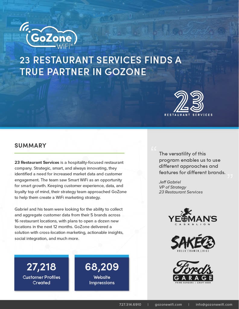 GoZone helps you understand the people who frequent your store. Build customer profiles from shoppers who connect to your Wi-Fi network. Leverage real-time insights and analytics to make decisions that help you fuel growth.